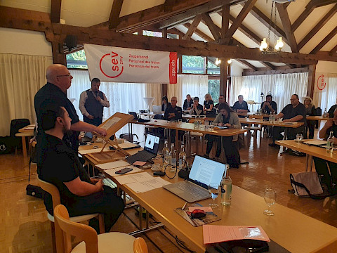 Weitere Diskussionsthemen sind Probleme rund um die Einreise von Flüchtlingen, das Projekt «Integrierte Produktionsplanung» und die Anzeige beim BAV wegen der Umwandlung von Pausen in Arbeitsunterbrechungen, wie sie im Bericht aus dem ZPV Zentralausschuss ausführlich beschrieben wurden (siehe SEV-Zeitung Nr. 13).