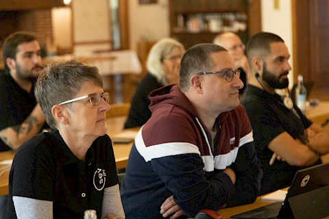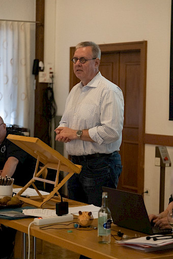 Kurz vor der Mittagspause heitert der humorvolle Auftritt von Matthias Hartwich die Runde auf. Der künftige SEV-Präsident steht vor seiner Wahl am nächsten Tag Red und Antwort und verdeutlicht, dass für ihn der Präsident des SEV der «Erste Gewerkschaftssekretär» der Organisation ist. Wichtig seien ihm insbesondere der Dialog – er will stets ein offenes Ohr haben für die Anliegen und Sorgen der Kolleg:innen – Solidarität und Transparenz.