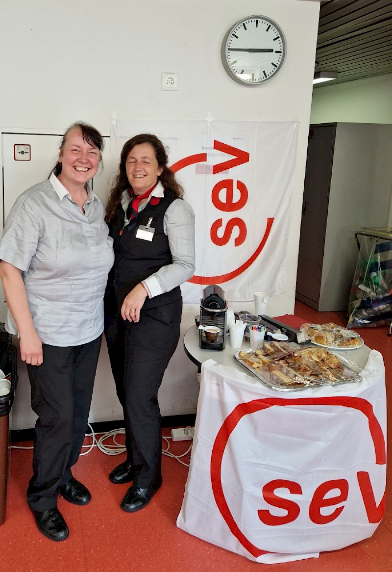 Am 13. Juni 2022 fand in Luzern die Werbeaktion „Kaffee und Kuchen“, organisiert vom ZPV Luzern statt. Als Gäste durften wir Jürg Hurni, Zentralsekretär SEV und Katrin Hugentobler, Standortleiterin Luzern begrüssen. Sowohl die Kolleginnen und Kollegen vom Zugpersonal, wie auch vom Lokpersonal, einige Kolleg:innen von der Zentralbahn und Teamleiter fanden den Weg zum Kuchentisch, wo sich viele spannende Gespräche ergaben. Der vom Vorstand eigenhändig gebackene Kuchen fand wiederum grossen Anklang bei allen Gästen.