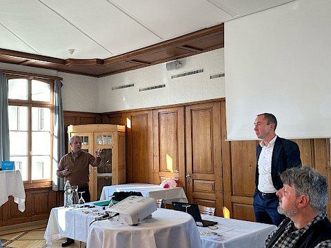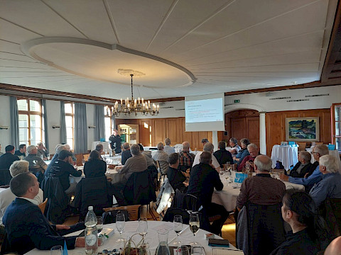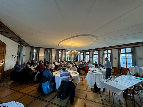 SEV Präsident Matthias Hartwich stellte sich vor. In seinem Referat wies er darauf hin wie wichtig eine starke Gewerkschaft ist. Auch SEV intern gab es einige Herausforderungen, da es viele Wechsel gab durch Pensionierungen. Mit der Politik wird es schwierige Verhandlungen geben über die Zukunft im Personen- und Güterverkehr. Ein Thema ist auch die 13 AHV Rente welche sich die Pensionierten schon lange verdient haben.