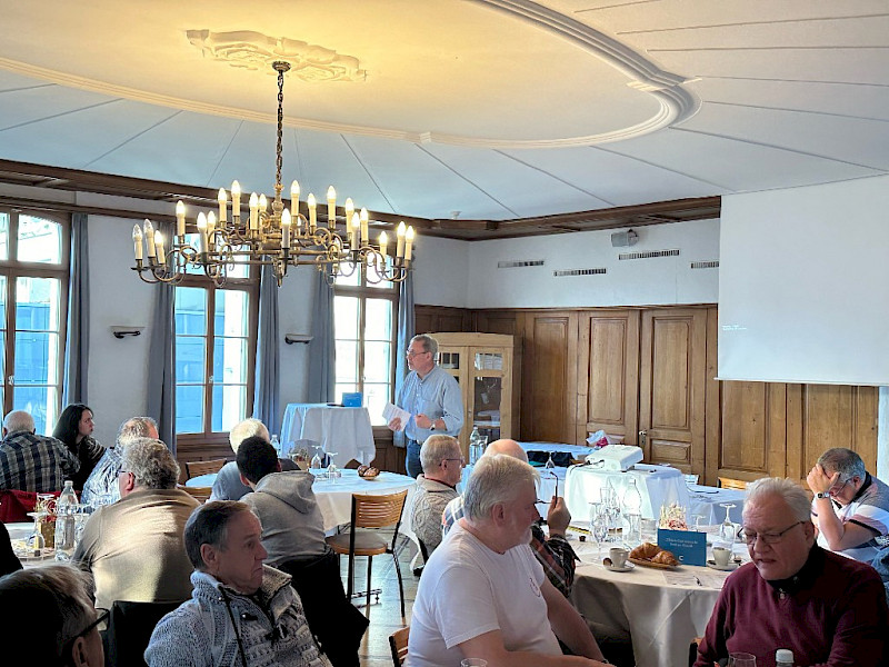SEV Präsident Matthias Hartwich stellte sich vor. In seinem Referat wies er darauf hin wie wichtig eine starke Gewerkschaft ist. Auch SEV intern gab es einige Herausforderungen, da es viele Wechsel gab durch Pensionierungen. Mit der Politik wird es schwierige Verhandlungen geben über die Zukunft im Personen- und Güterverkehr. Ein Thema ist auch die 13 AHV Rente welche sich die Pensionierten schon lange verdient haben.